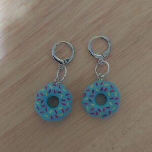 Adorable,  unique Donut earrings.  Blue with Sprinkles.  These earrings are perfect for the holiday events to add a little fun. Perfect for children, tweens,teens and those young at heart.