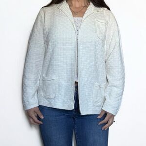 This orlon sweater is so beautiful and so high quality. It’s vintage and has survived the test of time. Lovely basket weave design with collar and pockets.