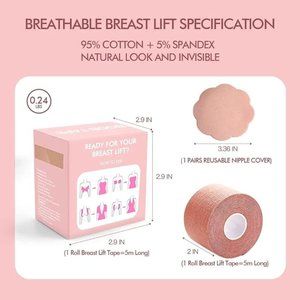 · Upgraded high quality material: The Boob Tape is made of 95% cotton and 5% spandex and can be stretched to 180 percent of its original length. The Boob strap is made of a more delicate and smooth fabric that is soft and skin-friendly. Sticky Bra Covers have a non-woven outer surface and an anti-allergenic premium silicone lining. They are ergonomically designed to give the impression that you are wearing nothing at all.