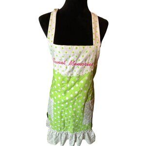 Doodlebug Design Inc. Green & White Polka Dot Apron With Sweet Memories Embroide