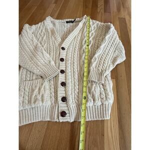 Doogan Donegal Ireland Irish 100% Wool Cardigan Sweater Ivory Sz M Fisherman