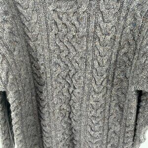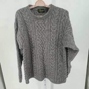 Doogan Donegal Wool Silk Cable Knit Fisherman Sweater Sz Large Gray Ireland