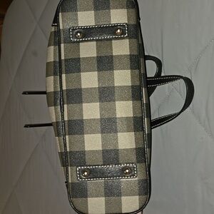 Dooney & Bourke Black And Gray Checkered Shoulder Bag NWOT. Stylish checkered tote bag with black and gray pattern. Perfect for everyday use. Zipper top closure. The inside has 3 pockets and 1 Zipper pocket. Black leather trim.