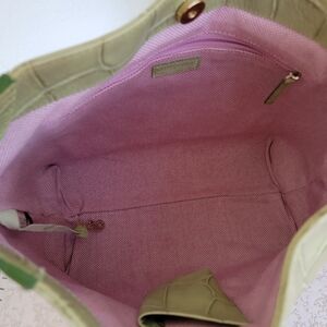 Excellent pre-owned condition Dooney and Bourke croc embossed Hobo leather bag in pistachio. Gorgeous medium sized bag, gingham check lining featuring 1 large zip pocket and 1 small slip pocket. Two outer zip compartments to easily access essentials. This bag is beautiful and has been cleaned inside and out using only the finest materials. Brass hardware, Dooney and Bourke bag charm. This one is a beauty.