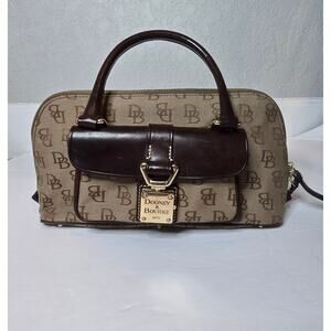 Dooney And Bourke Small Purse Bag Brown Signature Canvas Faux Leather Clasp