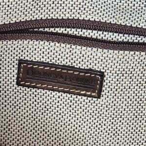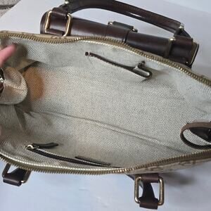 Tags: Dooney and Bourke, small, purse, bag, brown, signature canvas, faux leather, clasp, logo, gold