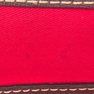 Interior: Red lining, zip pocket, slip pockets, key leash