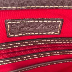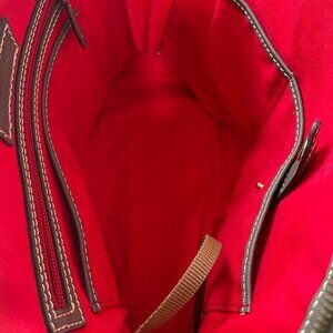 Pre-owned, excellent condition. Exterior leather and trim show very light wear. Hardware shiny and zipper smooth. Interior is clean with only minor marks caused by outside hardware pressure. Includes original Dooney & Bourke dust bag.