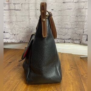 Dooney And Burke Samba Black Pebbled Leather Logo Lock Hobo Shoulder Bag