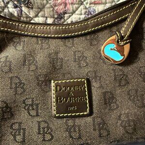 Dooney & Bourk HP724 Signature Black Canvas Leather Mini East West Slouch Bag