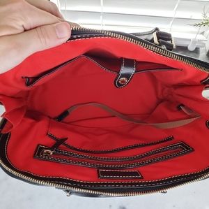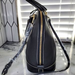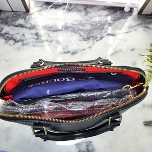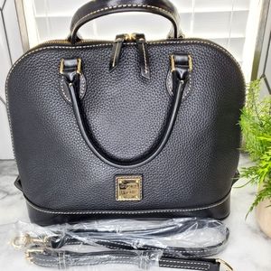 Dooney & Bourke Zip Satchel black -modern dome shape, with matching color vachetta trim.