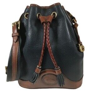 Dooney Bourke AWL Pebbled Leather Drawstring Hobo Bucket Navy Brown Shoulder Bag