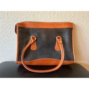 Keywords: Dooney & Bourke, All Weather Leather, Handbag, Satchel, Vintage, Leather Bag, Black, Brown, Designer Handbag, Preowned, Classic, Everyday Bag, Work Bag