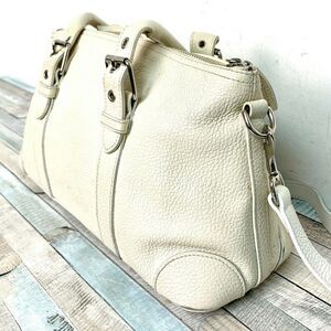 Dooney & Bourke All Weather Leather CREAM IVORY PEBBLED LEATHER ZIP SHOULDER BAG