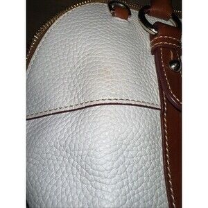 Dooney & Bourke Aubrey Cream Brown Pebble Leather Tassel Satchel Handbag *READ