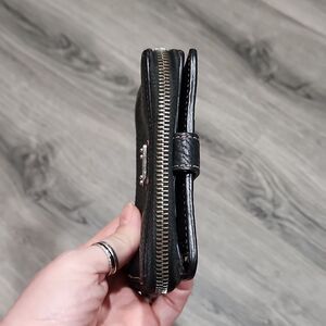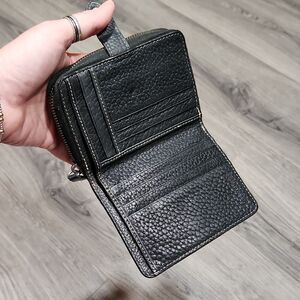 Dooney & Bourke BLK Pebbled Leather Mini Wallet, silver hardware, zipper and snap closure. Holds cash, cards and change. Hardware shows use but no other flaws.