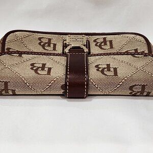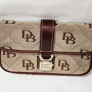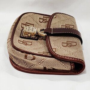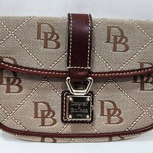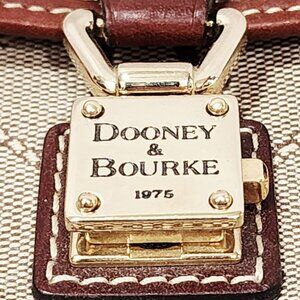 Dooney & Bourke BROWN LEATHER Logo Purse Bag Small Canvas Monogram Gold Used