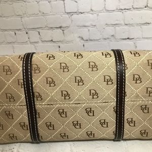 - Lighter brown DB Signature embroidered over the bag.