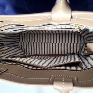Style: Beacon Zip Handbag, Classic Carryall, European Smooth Leather, Matte Finish, Logo, Lined in Striped Cotton, Zip Closures, Original Dust Bag