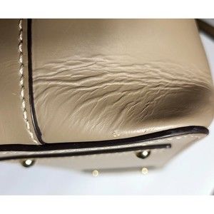 Condition: Well-loved preowned condition. Please zoom in on pictures to see markings on front, back and bottom of bag. There are a few flaws in the handles. See picture #12 for corner creasing on both of back corners. Clean interior. Stock Number: PB052
