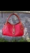 Made from a beautiful red soft Pebble Grain Leather, brown Vechetta leather trim and brass hardware, measures approximately 9 1/2” wide at the top, 13 1/2” wide at it’s widest point, 11 wide at the bottom. It measures approximately 7 1/2” high at the handle , 6 1/2” in the center, 5 1/2” deep with a 6” handle drop. with a 11” adjustable shoulder strap drop.