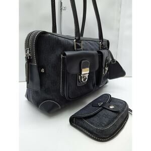 Dooney & Bourke Black Canvas DB Printed Pockets Zipper Satchel Bag w/ Wallet