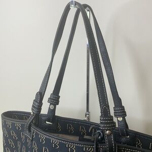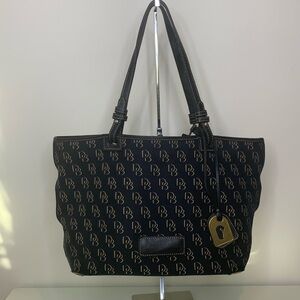 Dooney & Bourke | Black Canvas Leather Open Top Monogram DB Logo Shoulder Bag