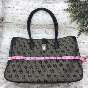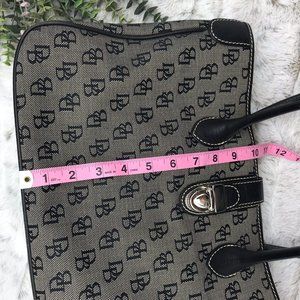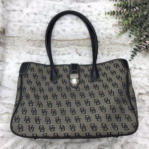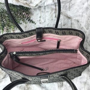 [Dooney & Bourke] Black Double Long Handle Tote DB Logo Print Pink Interior Bag Pocketbook Handbag