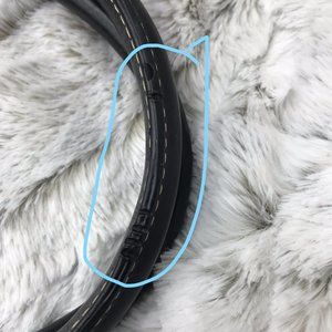 Please zoom into all pictures for best idea of condition. Has indentation marks on handle; Leather trim on all bottom corners are scuffed; Has marks and yellowing on the interior, especially around the top portion and around the pockets. Wasn't able to photograph, but there is yellowing around the inside perimeter of the cell phone pocket. The leather logo on the inside has become speckled.