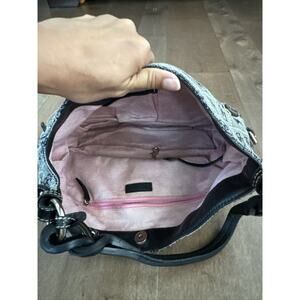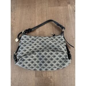 Dooney & Bourke Black Leather Gray Monogram Jacquard Should Bag Handbag