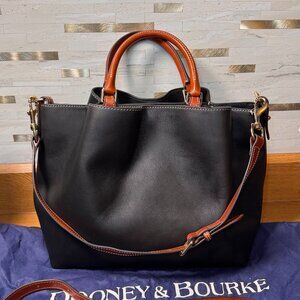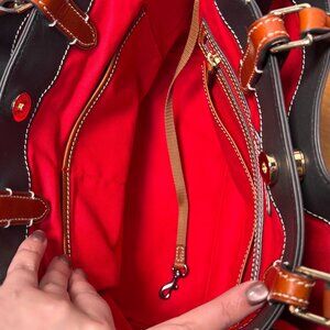 Dooney & Bourke Lucca Leather Barlow Purse in Black with Brown Handles