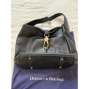 Dooney & Bourke Black Pebble Leather Shoulder Bag with Gold Hardware & Dust Bag