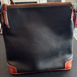 Dooney & Bourke black pebbled leather crossbody with brown trim