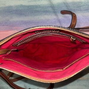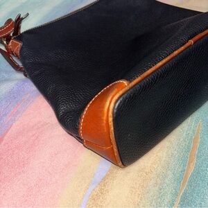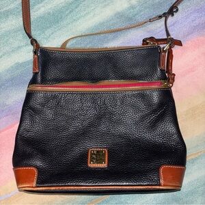 Dooney & Bourke Black Pebbled Leather Crossbody Bag Wide Black & Tan Purse