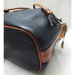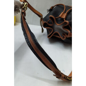 Dooney & Bourke Black Pebbled Leather Drawstring Buckle Shoulder Bag - Vintage