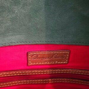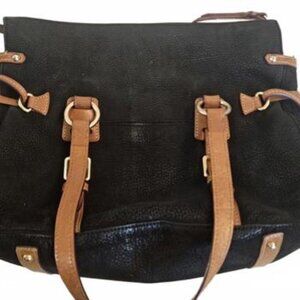 Dooney & Bourke Black Pebbled Leather HandbagTote with Brown Leather Straps