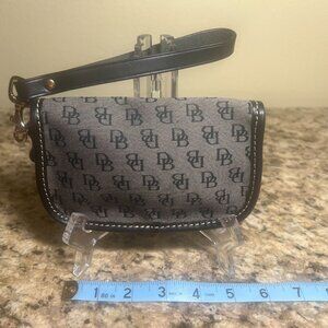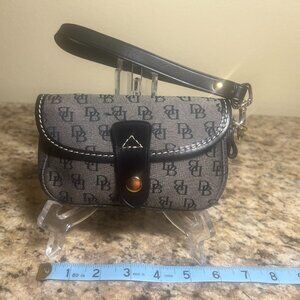 Dooney & Bourke Black Signature Leather Trim Flap Wristlet Pouch