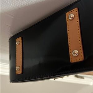 Elegant leather bag with a sleek design. Features a signature logo patch. New, never used !Beautiful crossbody or strap can be shortened to shoulder length