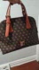 Chic satchel with monogram design. Features sturdy handles. Ideal for stylish outings.