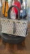 Chic satchel with iconic monogram design. Features black handles and gold accents. Perfect for everyday elegance.
