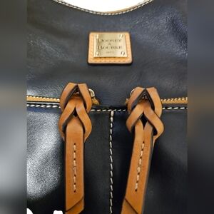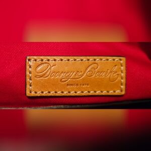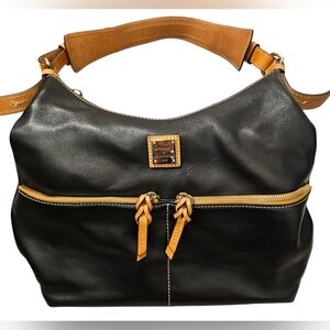 Dooney & Bourke Black and Tan Leather Hobo Shoulder Bag With Red Interior