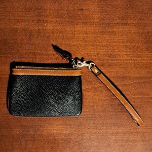 Dooney & Bourke Black and Tan Wristlet With Strap
