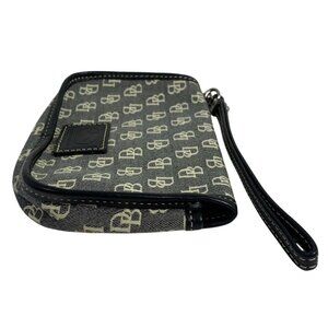 Dooney Bourke Black/Ivory Leather Trim Pouch Bag Wristlet Duck Logo EUC