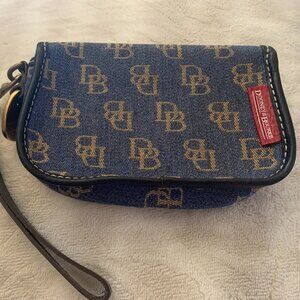 Dooney & Bourke Blue Denim Wristlet Black Leather