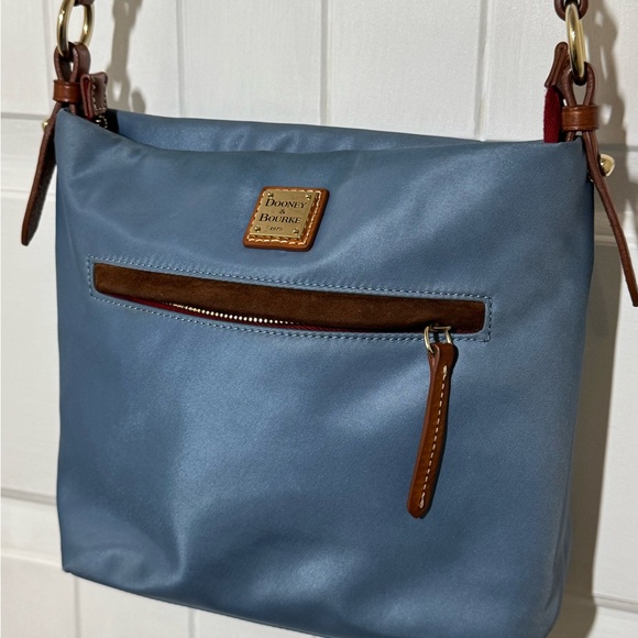 Stylish and versatile, this Dooney & Bourke crossbody bag in blue is perfect for any occasion. Crafted with attention to detail, it features a sleek design and practical compartments. In gently used condition. Normal light wear. Clean on the inside! No major marks or stains! Adjustable strap.