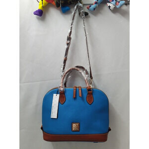 Dooney & Bourke Blue Pebbled Leather Double Handles Zipper Satchel Bag - NWT