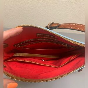 Dooney & Bourke Blue Pebbled Leather with Brown Trim