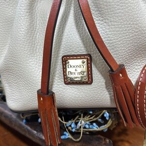 Dooney & Bourke Bone and Brown HOBO Pebble Leather Shoulder with Drawstring