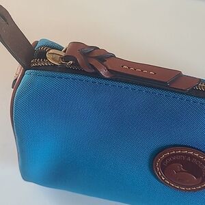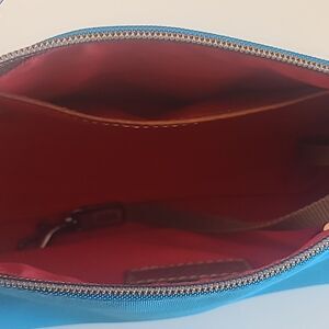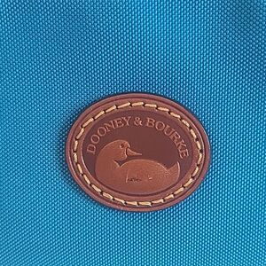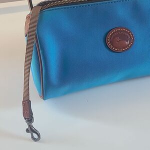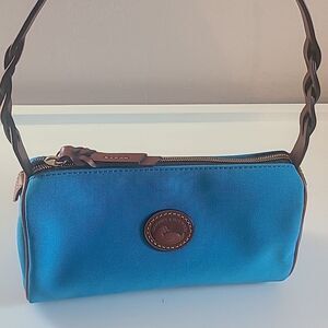 Dooney & Bourke Bright Blue Nylon Brown Leather Trim Small Barrel Shoulder Bag