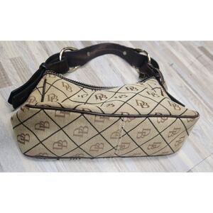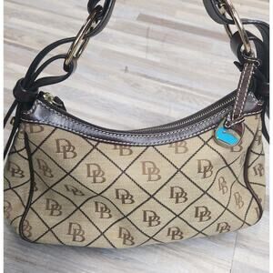 Dooney & Bourke Brown Canvas Leather Trim DB Printed Zipper Hobo Shoulder Bag